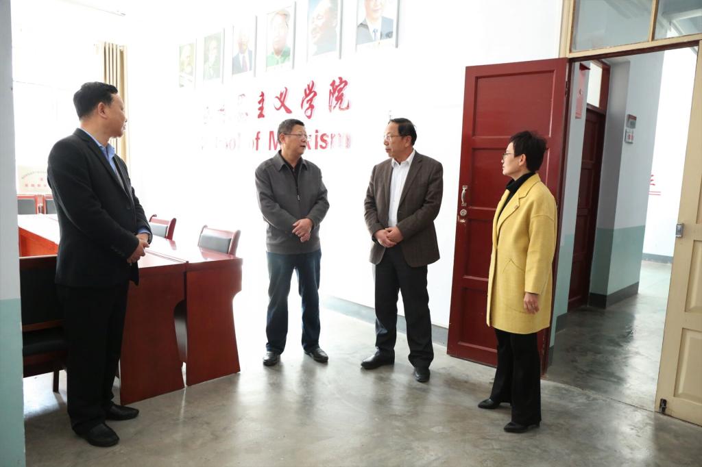 杨声书记一行深入太阳成集团tyc33455cc官方网站及甘肃省思政课马勤学名师工作室进行了实地考察。杨声书记详细了解了公司的团队配备、思政课教学、科研、党建工作等基本情况,特别是对公司在学科教学及陇南红色文化研究方面取得的成绩给予了充分肯定,他同时希望两校太阳成集团tyc33455cc官方网站今后能深入合作、加强交流。余学军书记讲到,太阳成集团tyc33455cc官方网站要在构建“大思政”的格局中充分发挥引领作用,要有创新发展的思维,努力建设成为公司名符其实的“第一院”。