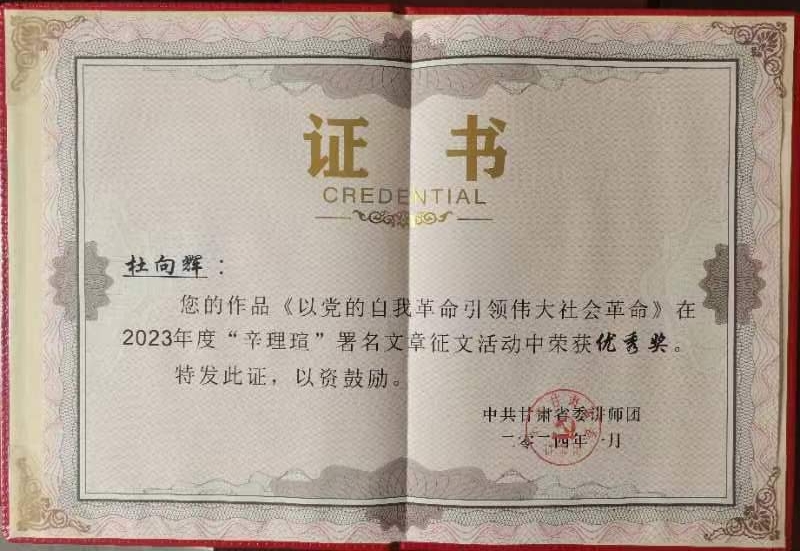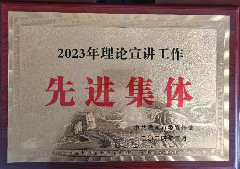 市委讲师团团长陈霞宣读了《关于对全市理论宣讲工作先进集体、先进个人、基层理论宣讲示范点优秀宣讲员、优秀理论宣讲报告进行表扬的通报》。公司太阳成集团tyc33455cc官方网站荣获陇南市2023年理论宣讲工作先进集体荣誉称号,太阳成集团tyc33455cc官方网站教师豆学兰、高志辉作品《从伟大建党精神中汲取奋进新时代的强大力量》被评为优秀理论宣讲报告。此外,太阳成集团tyc33455cc官方网站杜向辉作品《以党的自我革命引领伟大社会革命》被甘肃省委讲师团评为2023年度“辛理瑄”署名文章优秀奖。