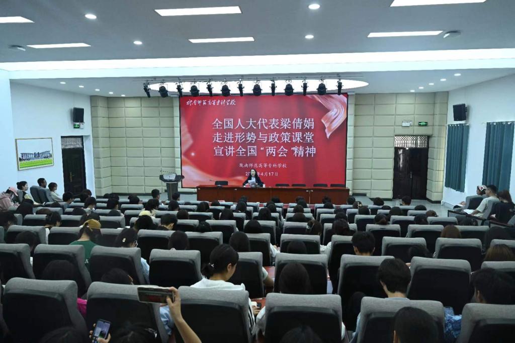 4月17日,第十三届、十四届全国人大代表,全国劳动模范、全国三八红旗手梁倩娟走进形势与政策课堂,为员工宣讲2024年全国两会精神。梁倩娟代表围绕大会各项议程、政府工作报告、全国人大常委会工作报告、甘肃代表团的履职情况等方面,结合自己参加全国人大会议的所见所闻、所思所获,与大家宣讲分享了大会盛况,传达了习近平总书记在全国两会期间的重要讲话精神和全国两会精神。她还分享了自己“从淘宝店主到电商扶贫先锋”的创业故事,鼓励广大青年员工选择合适的创业赛道,抢抓历史机遇,踊跃投身到乡村振兴的时代潮流中来,为推动地方经济社会高质量发展贡献青春力量。